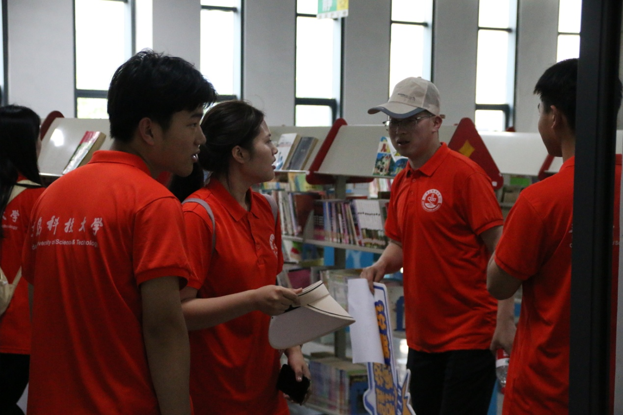 实践队第二站来到了高密市最大的城市广场公园——文体公园,走访了公园周边的高密市博物馆、高密市图书馆和豪迈体育场。在高密市博物馆,队员们近距离感受了高密这座城市身后的历史文化底蕴,从历史的进程中探寻当地方言文化的发展脉络;在高密市图书馆,实践队员得到了前来“充电”的读者和书友们的高度赞赏,他们纷纷表示普通话推广宣传是一项非常有意义的实践工作。在豪迈体育场,参加训练的体校运动员们被推广宣传活动所吸引,纷纷前来了解活动宣传内容,有一部分正在备战高考的高三体育生还咨询了实践队员们大学生活,与实践队员结下了深厚友谊,并表示自己进入大学以后也要积极投身于社会实践服务,为国家繁荣发展贡献自己的青春力量。
