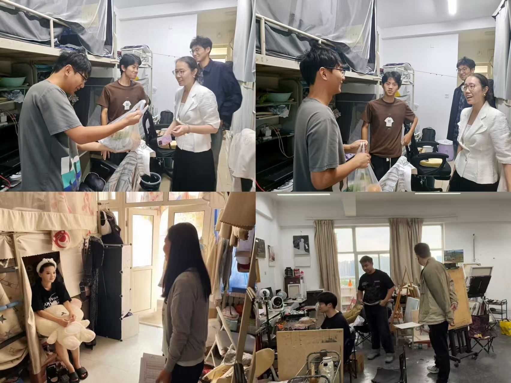 安全工作不松懈。值班期间,辅导员对学生宿舍、画室等常用场所进行安全排查,查看消防设施、用电安全等情况。通过学院公众号推送安全指南,引导学生提高安全防范意识,切实筑牢校园安全“防护墙”。