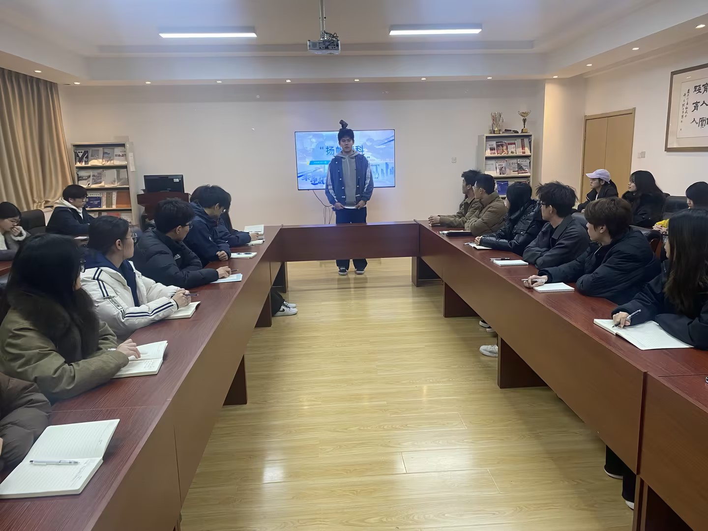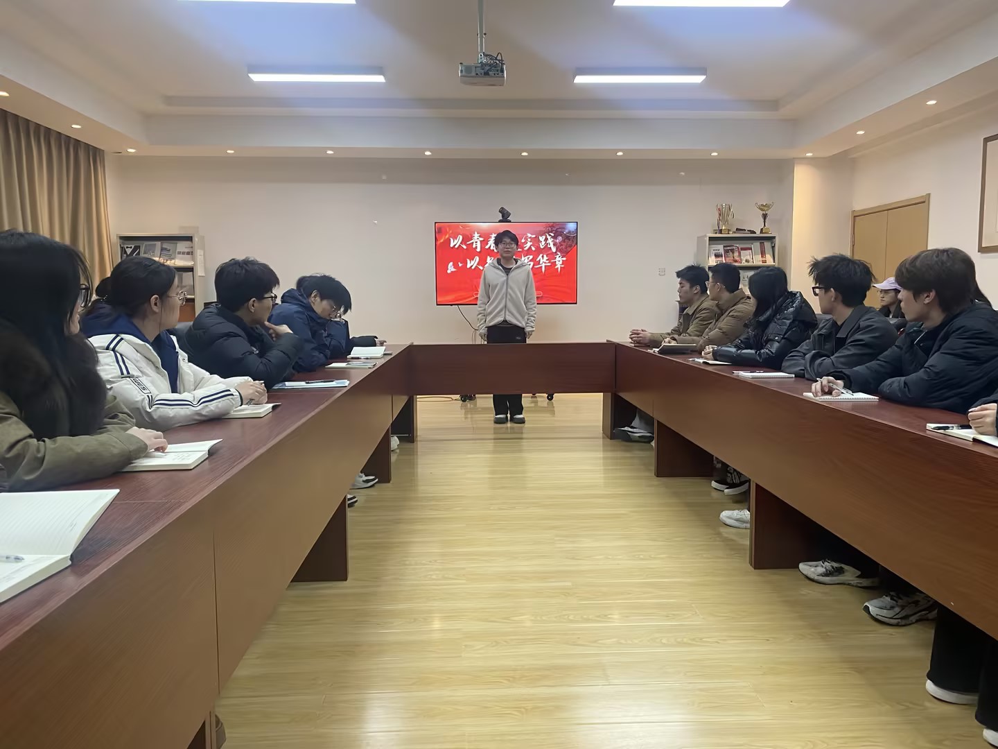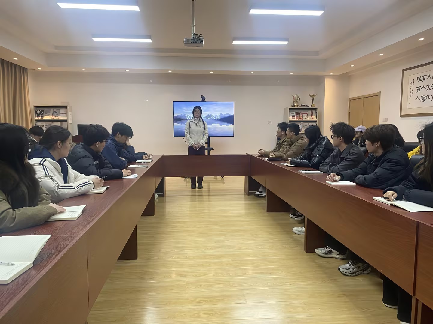在213会议室召开寒假社会实践“归来话收获”总结交流会。学院团委书记兼学工办主任颜枫、优秀实践团队代表、学生骨干等30余人参加活动。